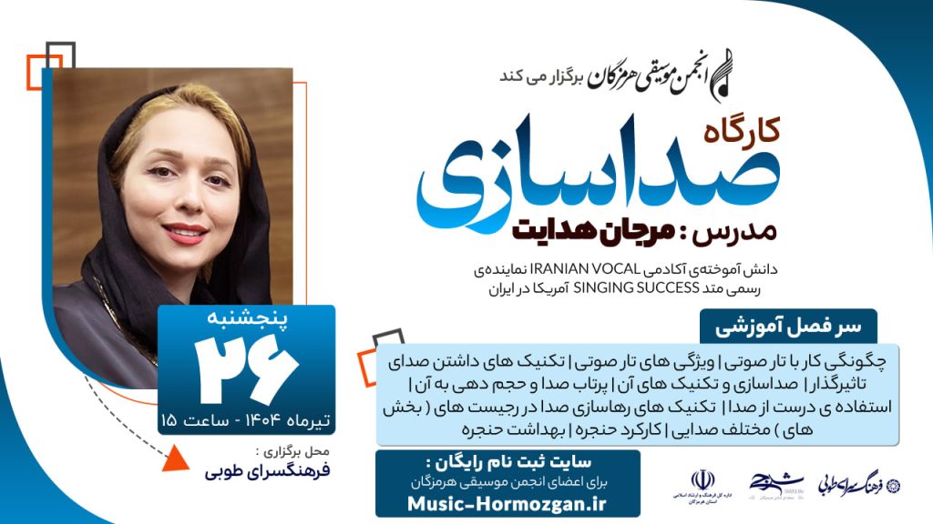 صداسازی، یکی از مهارتهای کلیدی برای هنرمندان موسیقی است که به بهبود کیفیت اجرا، افزایش تأثیرگذاری و حفظ سلامت حنجره کمک میکند. انجمن موسیقی هرمزگان با هدف ارتقای دانش و تواناییهای صوتی، کارگاه رایگان صداسازی ویژه اعضا برگزار میکند. این دوره با تدریس استاد مرجان هدایت، فرصتی ارزشمند برای علاقهمندان به یادگیری تکنیکهای حرفهای در استفاده از صدا خواهد بود